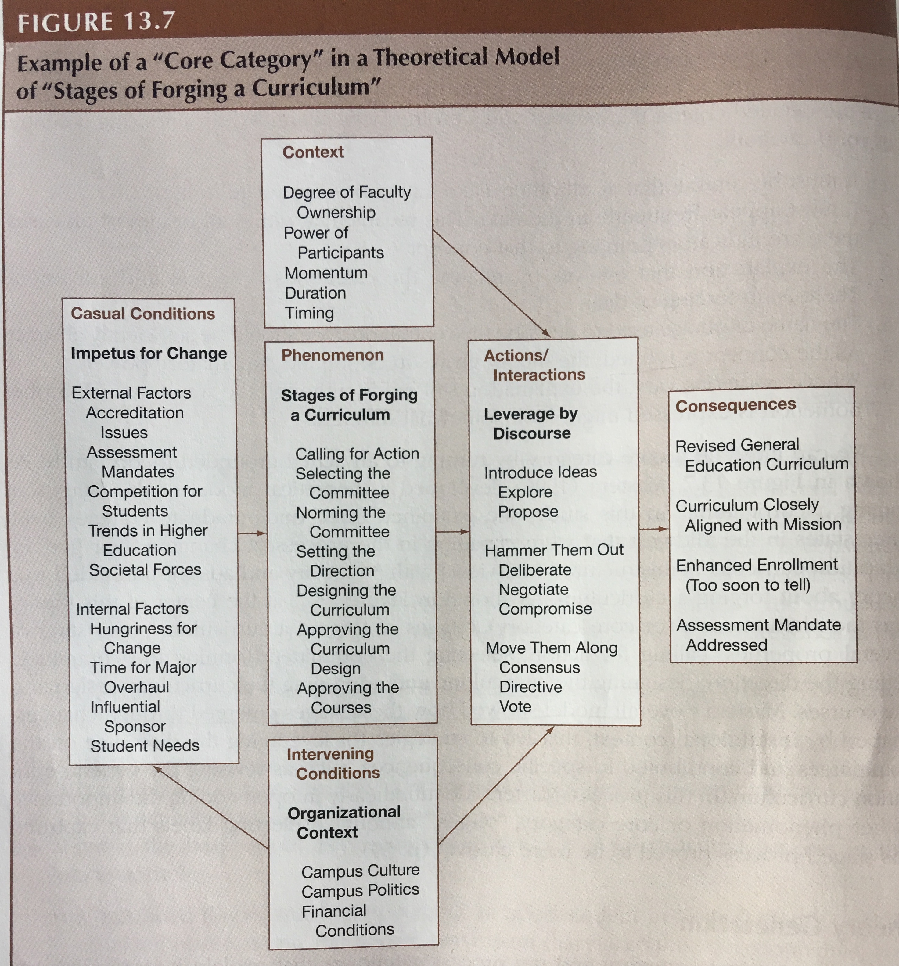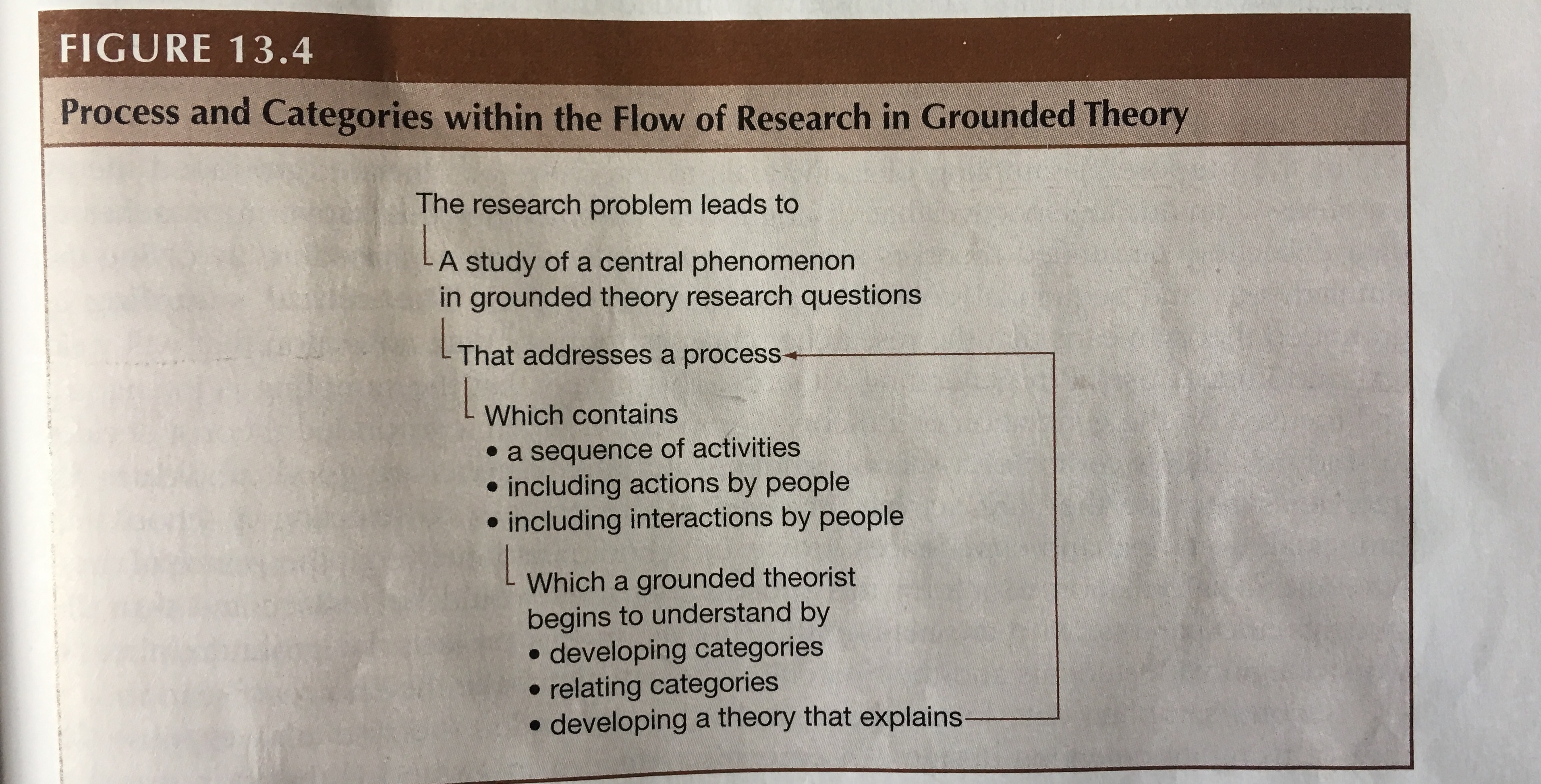 The researcher needs to “identify early on a tentative process to examine the grounded theory study” (Creswell & Guetterman, 2019, p.452), although this process may be modified later in the study. “The process should naturally follow from the research problem and questions that the researcher seeks to answer” (Creswell & Guetterman, 2019, p.452).