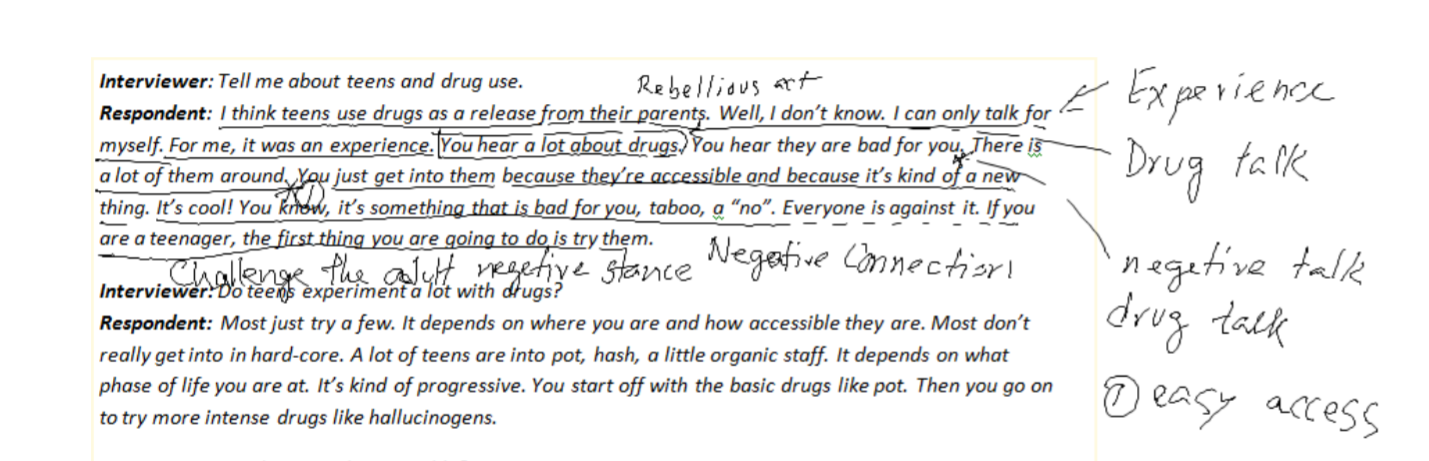 The researcher then recruits participants who have experienced or are going through the process of interest, which is as known as theoretical sampling—finding a sample of participants who have experienced the process that the researcher is interested in and can help develop a well founded theory. So in our example, it could be good to recruit smokers and former smokers in high schools and colleges.